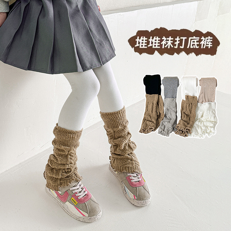 子供の靴下のズボンの春秋の中で筒の靴下は韓国版の純色の坑条の女の子の春の長い筒の積み重ねの綿の靴下のズボンをつなぎ合わせて底を打ちます。