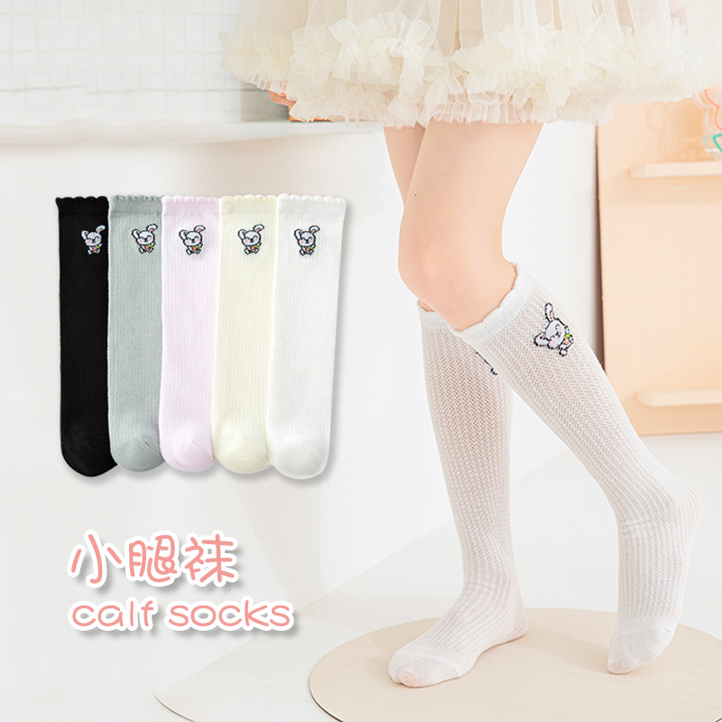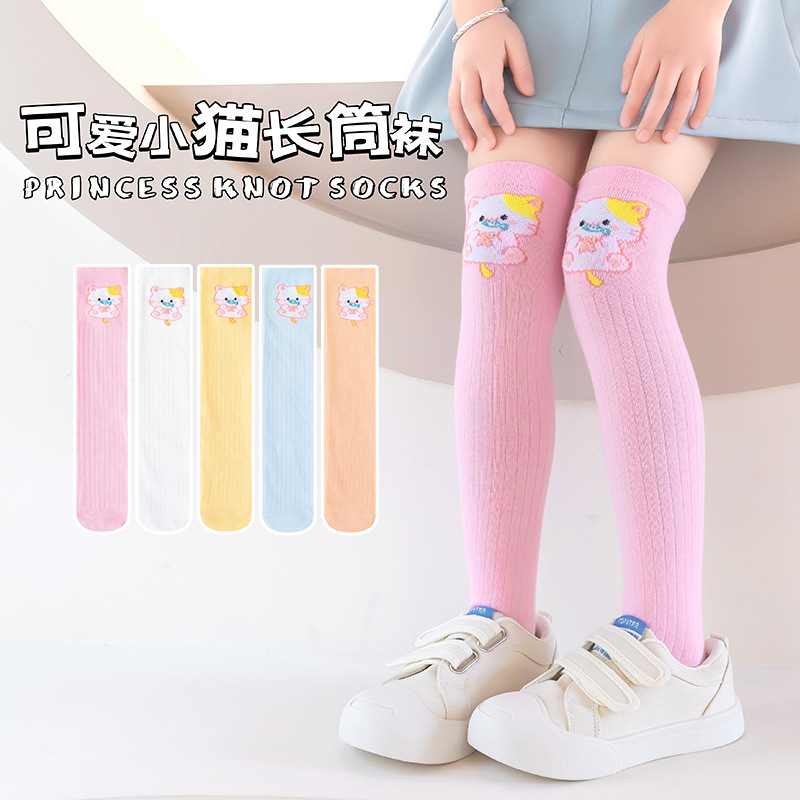 女の子の靴下の卸売り春夏の薄いタイプの通気性の中で筒の綿の靴下のかわいい漫画の赤ちゃんの長い筒のふくらはぎの靴下の赤ちゃんの靴下