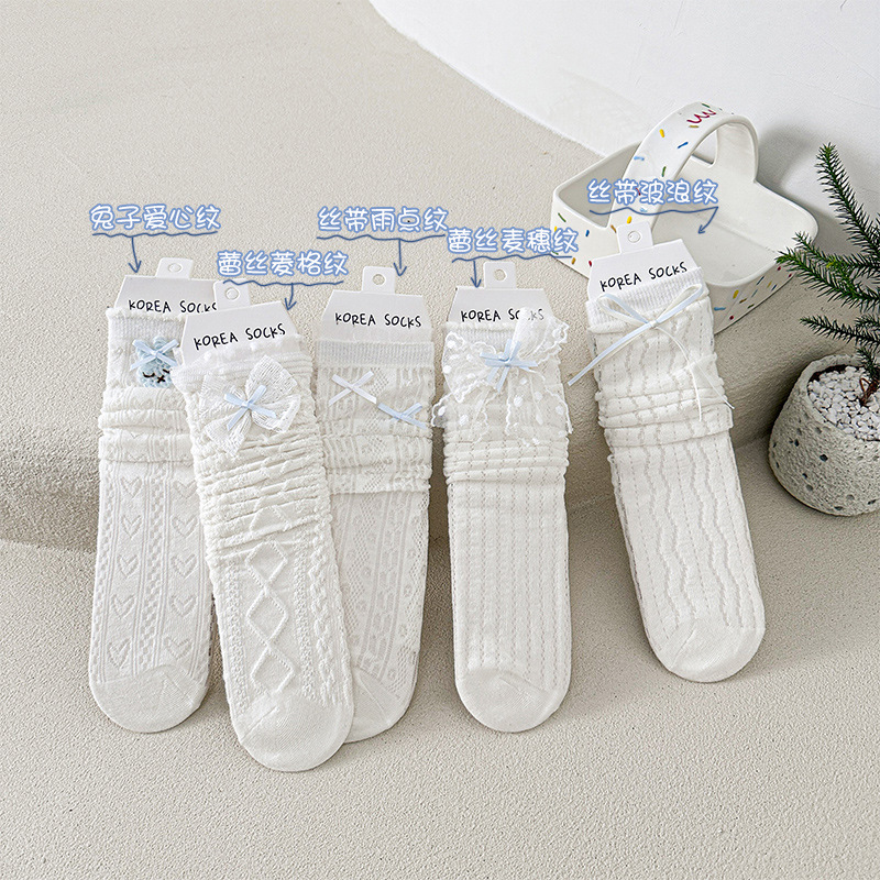 2025年の靴下の女性の春夏の新型の韓国版の蝶結びの薄い綿の中筒の女性の靴下の一体機の骨がない靴下の女性