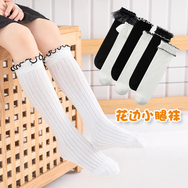 春の新しいレースの子供の中筒の靴下の黒い白い女の子の王女の靴下の足の靴下の綿の純色のストッキング