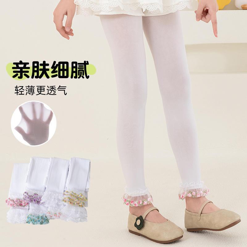 子供のタイツの春と夏のストッキングの通気性はボールのカラーのレースの9分のズボンの女の子のレースのタイツに抵抗します。
