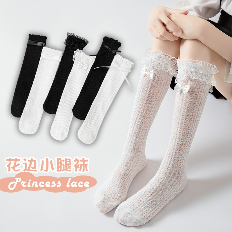 春夏新作子供用レースソックス子供用女の子ロリータプリンセスソックス白黒メッシュストッキング
