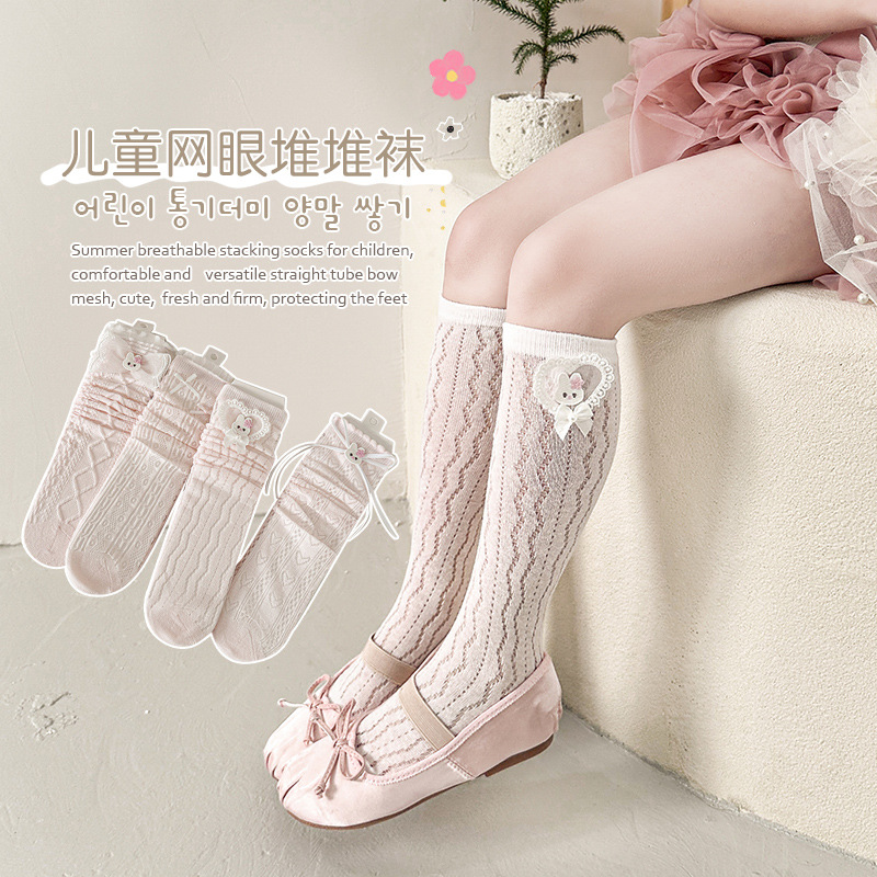 女の子のストッキングの夏の薄いタイプのネットの目の防蚊の靴下の赤ちゃんの子供の靴下の子供の春と秋の高い筒の膝の長い靴下
