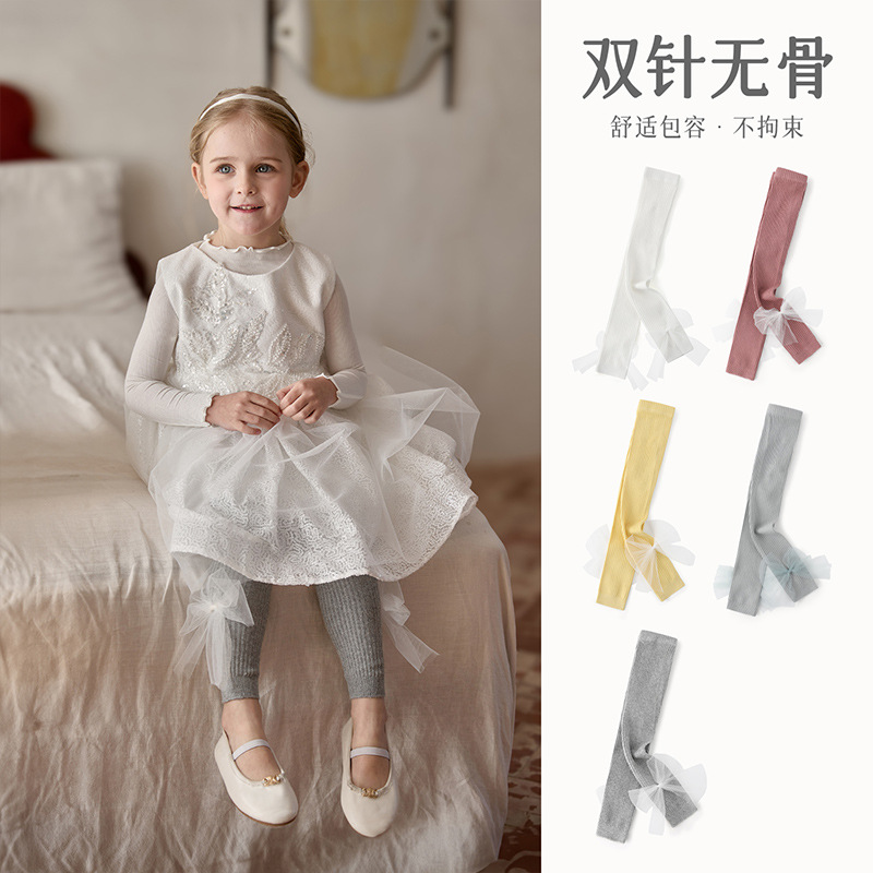春の新商品の赤ちゃんネットの蝶結びの9分のズボンの王女はズボンの靴下の女の子の柔らかい綿の高弾のレギンスの春と秋
