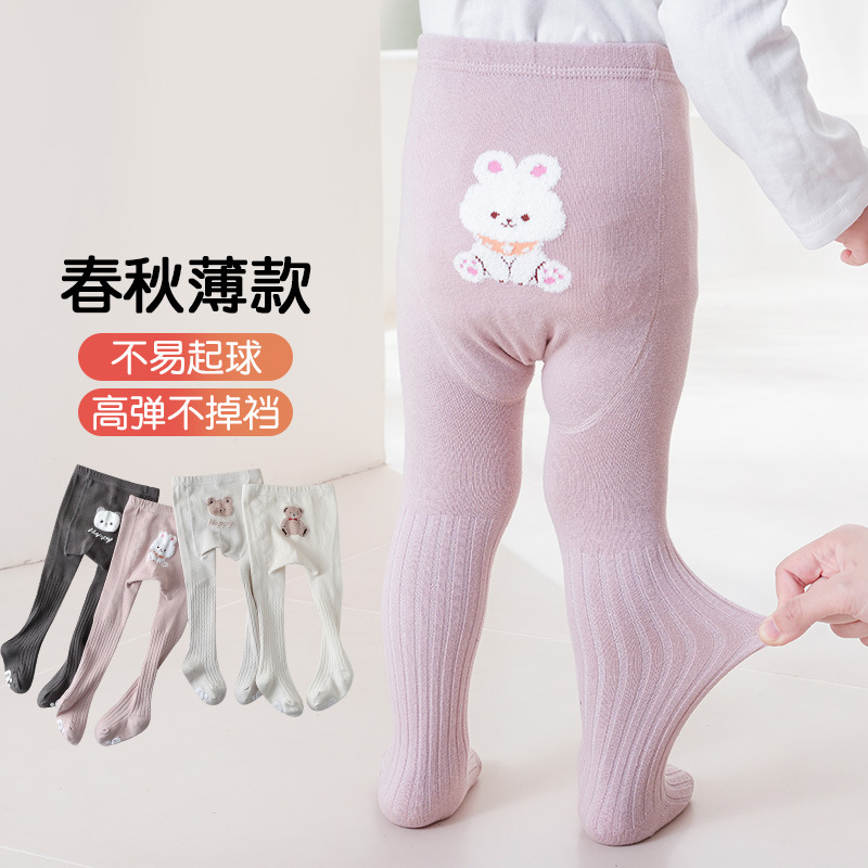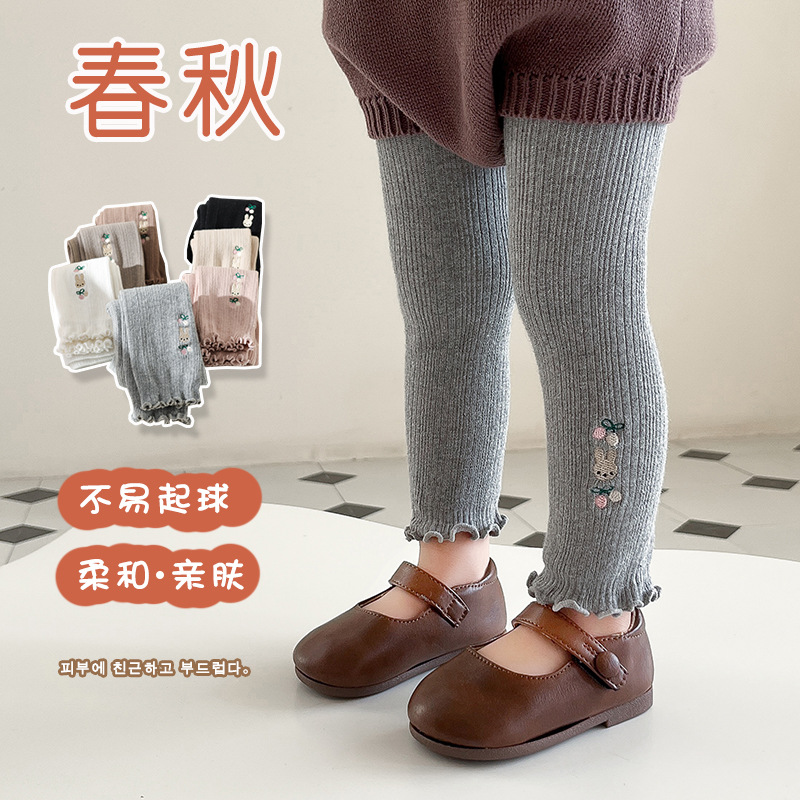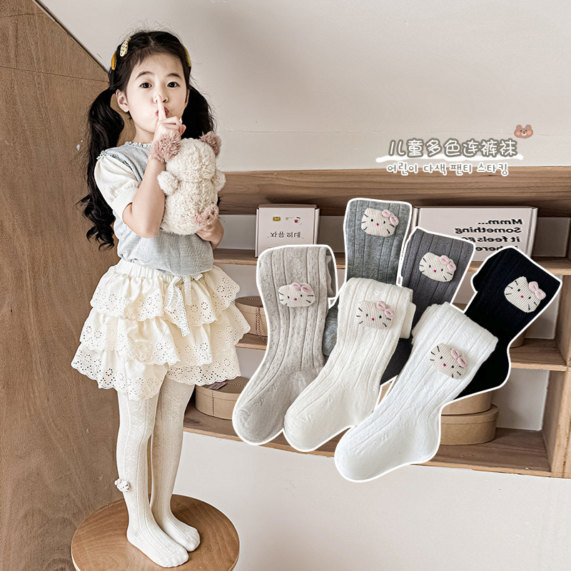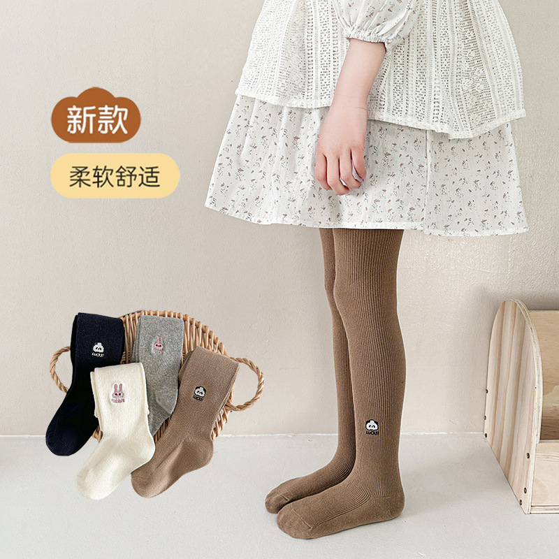 子供のズボンの靴下の卸売り2025春秋の女の子の刺繍の白いタイツの薄いタイプのかわいいウサギの綿のレギンス