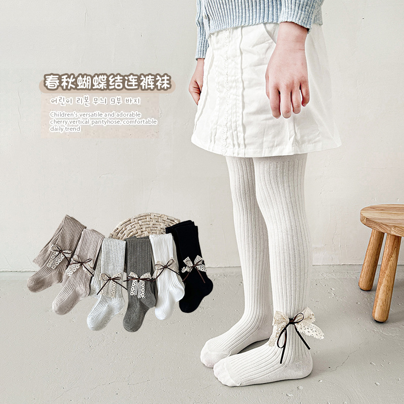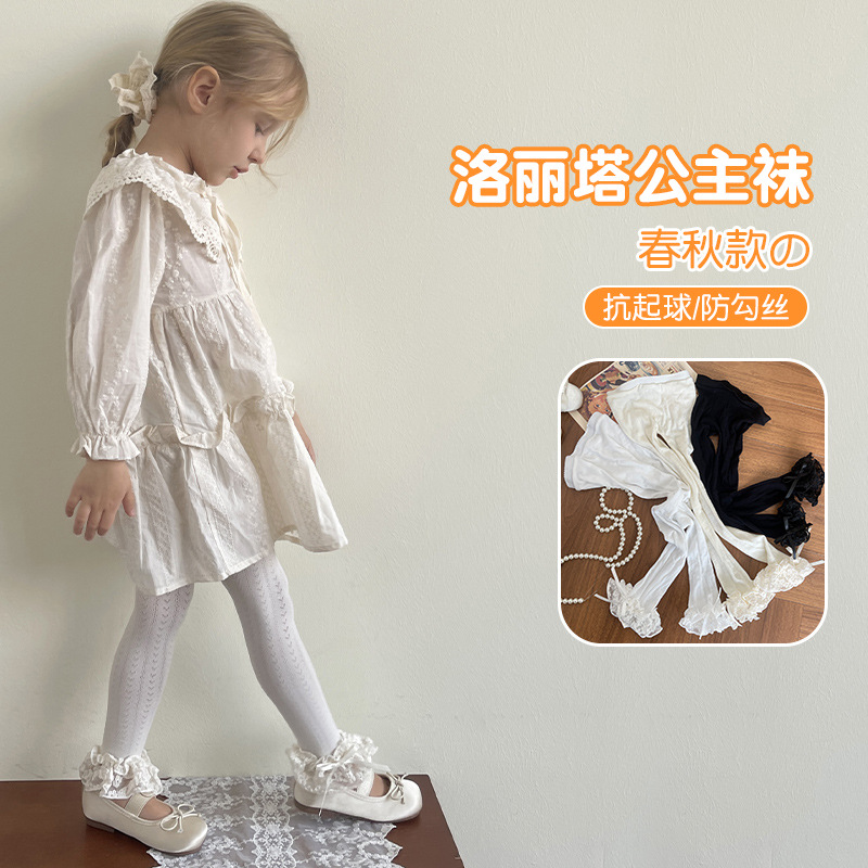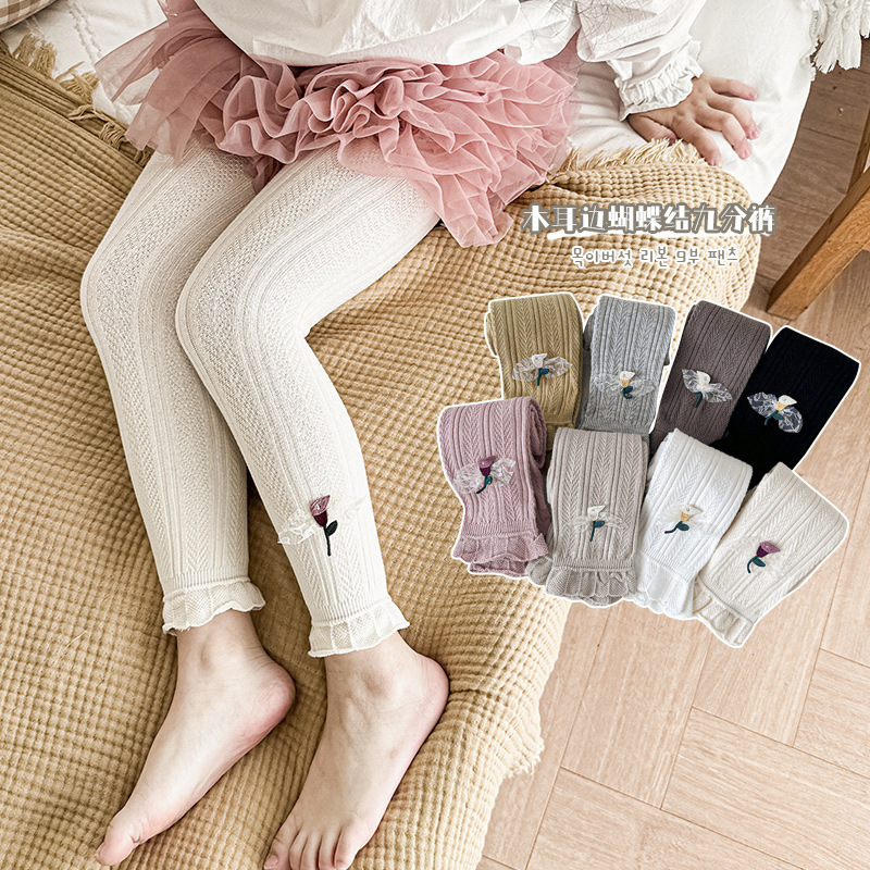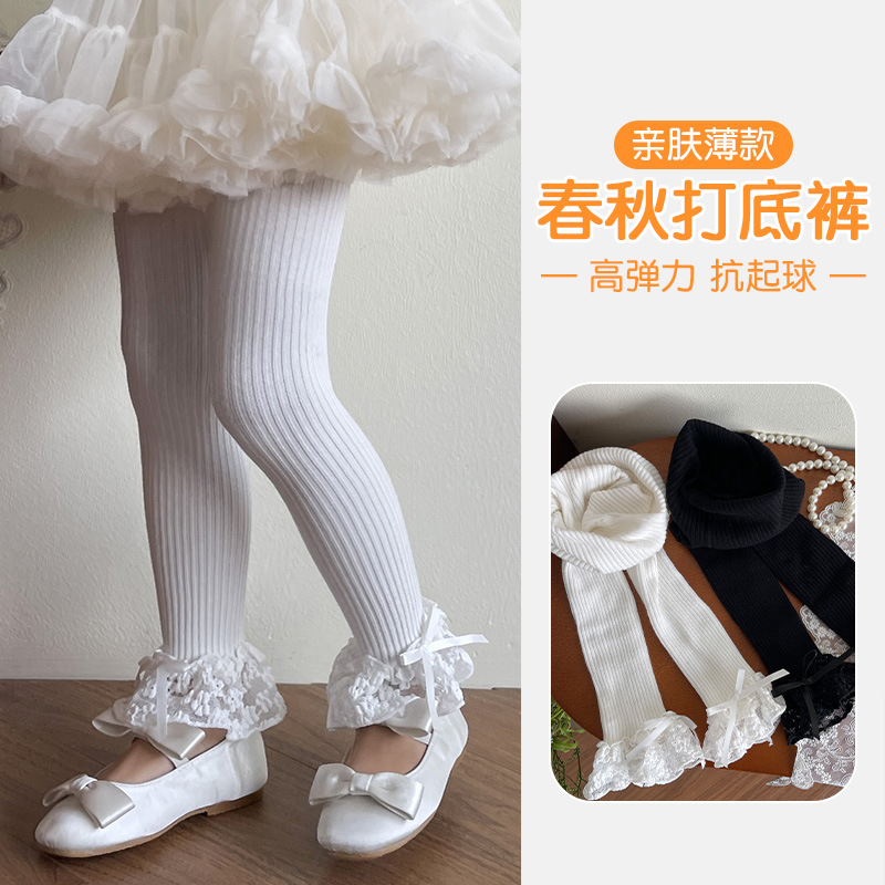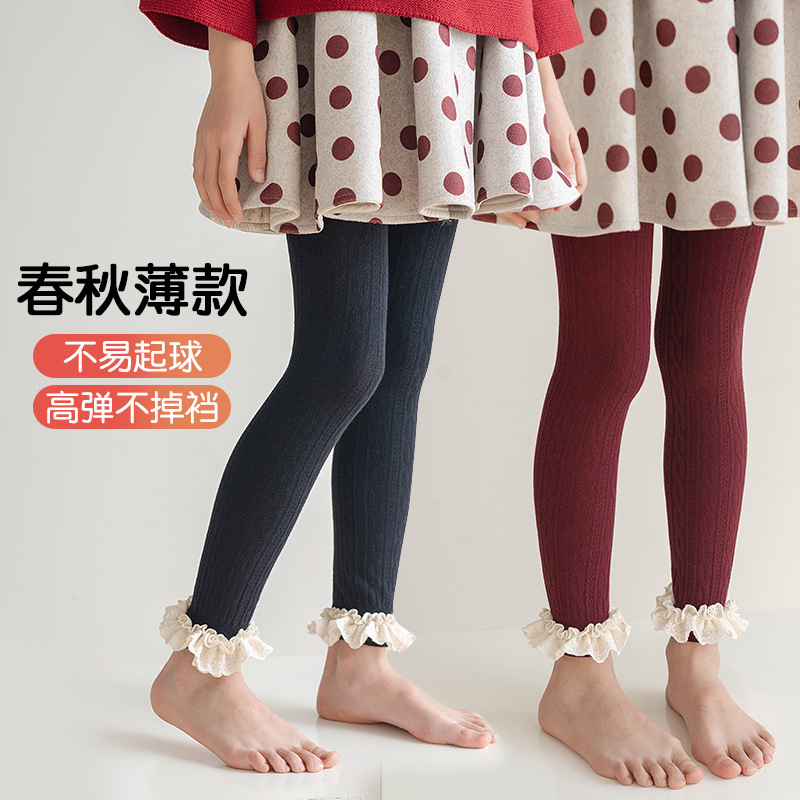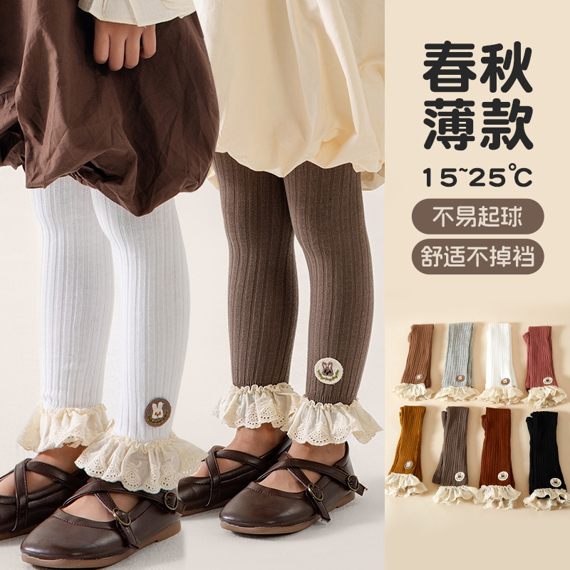 子供の靴下のレースの女の子の9分のズボン2025春秋の新型の無地の子供のレギンスの卸売りの韓国系のズボンの靴下