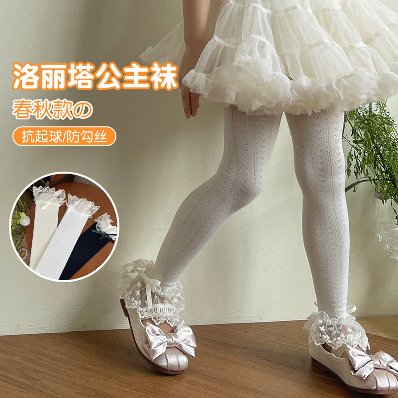 新しい春夏の子供のレギンスのロリータの王女の靴下のメッシュの通気性のレギンスのレースのストッキングのタイツの靴下