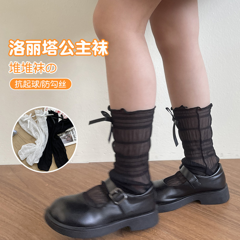 韓国の白いレースの蝶結びの下腿の靴下jkロリータの中で筒の山のネットの靴下の子供の夏の薄い靴下