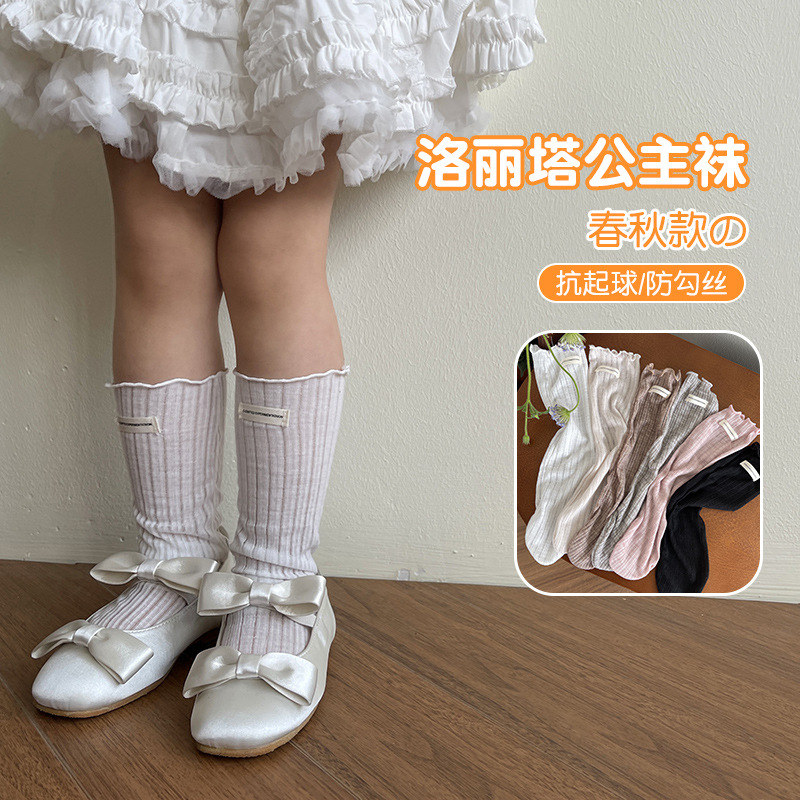 春と秋の春と夏の対外貿易の赤ちゃんの靴下の子供の木の耳の縁の中で筒の靴下はボールのロリータの足の靴下の王女の靴下に抵抗します。