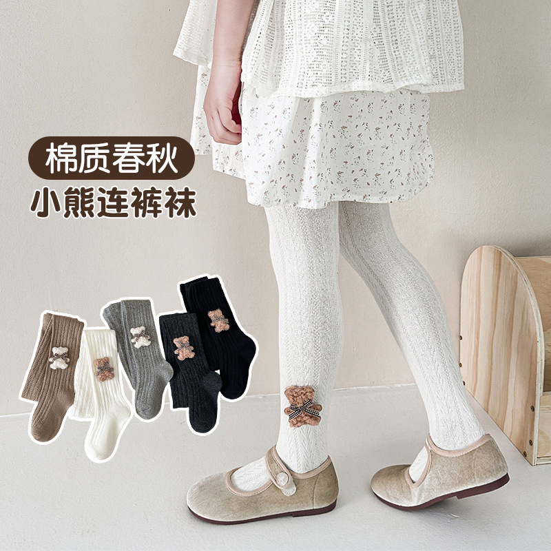 新型の工場はかわいい熊のタイツの精練綿の快適な高弾の子供の子供の赤ちゃんのタイツを承認して底を打ちます。