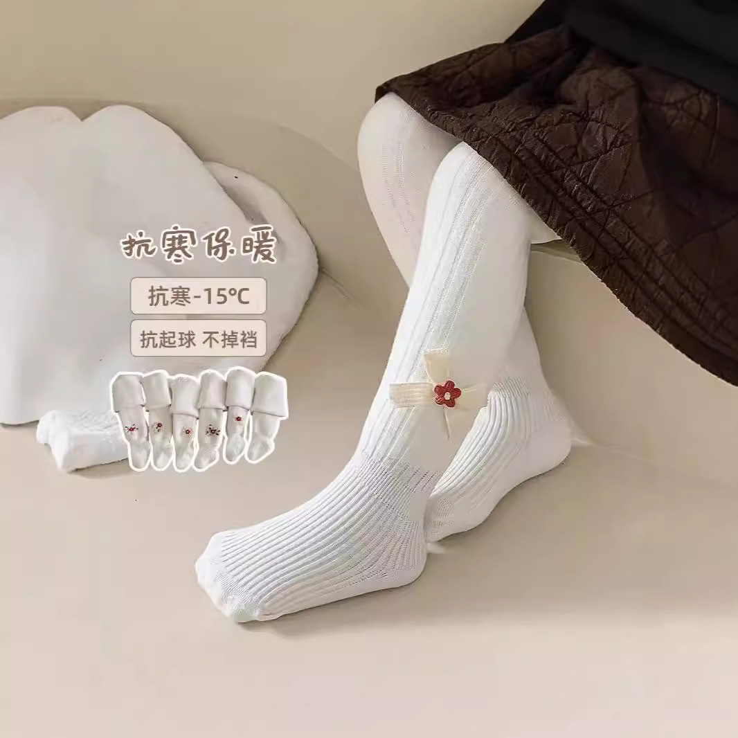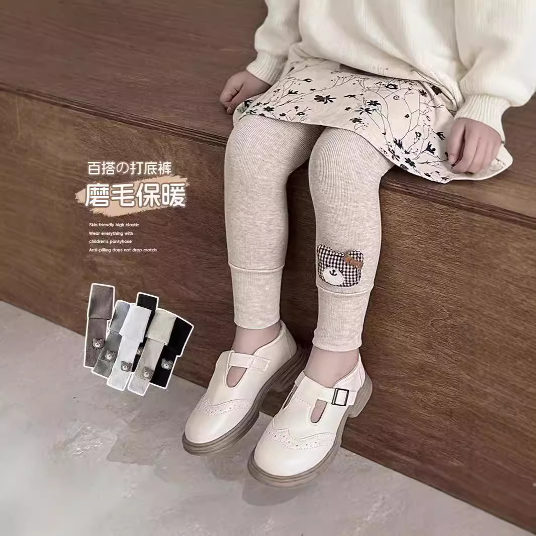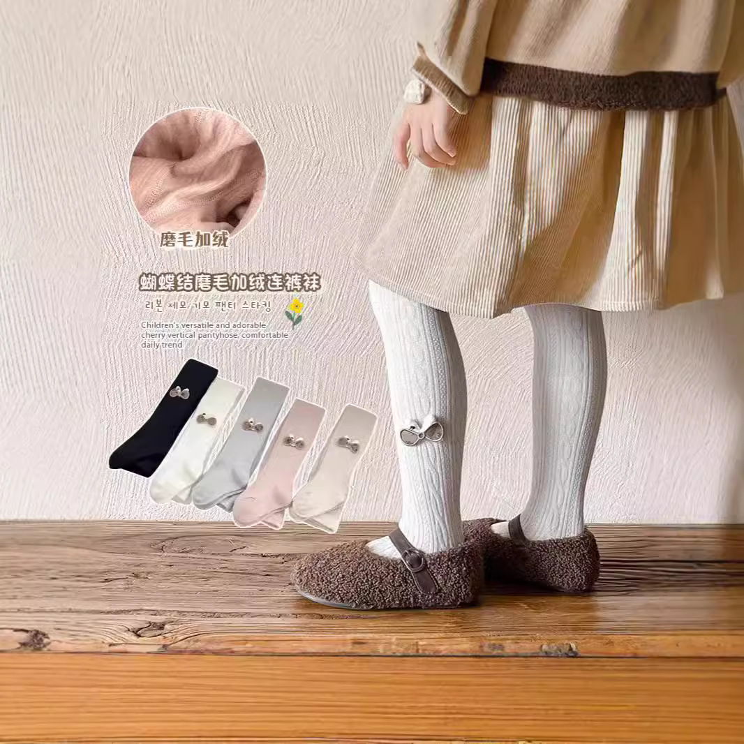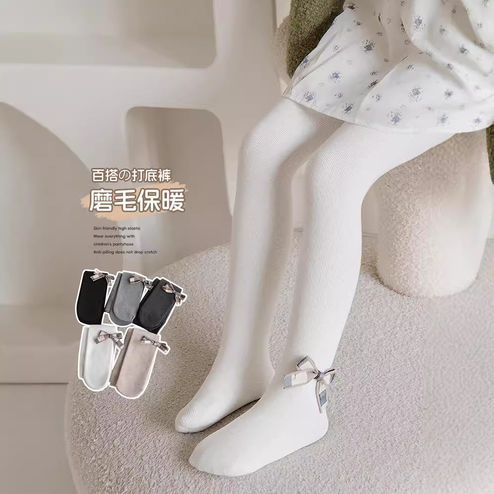 2024新型子供用レギンスは、秋の冬の大きな蝶結びの純色の女の子のレギンスに抵抗します。