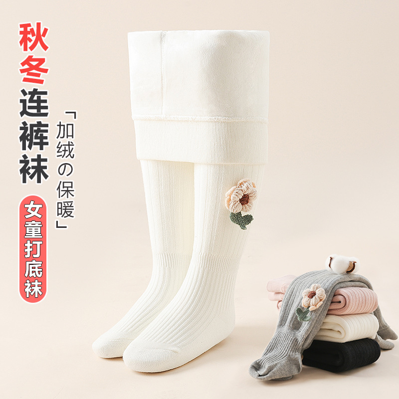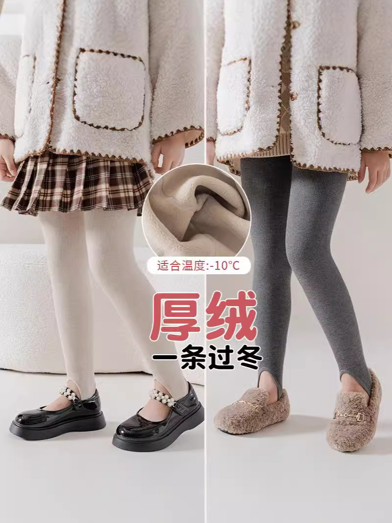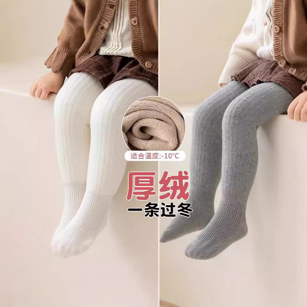 24秋の新型ベルベットのレギンスの純色保温パンストの赤ちゃんの女の子が足を踏んでレギンスを踏む秋冬