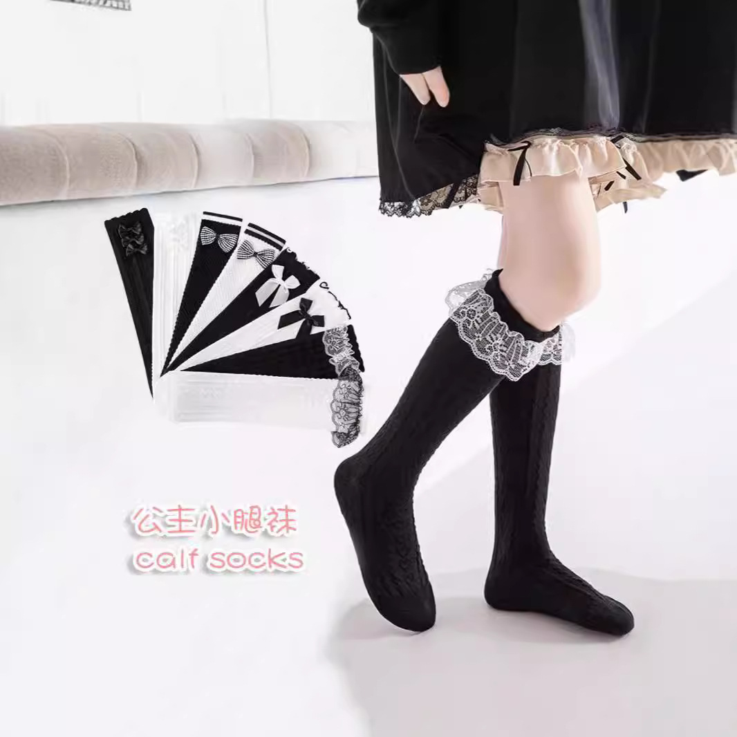 子供のふくらはぎの靴下の秋の純色の女の子は糸のレースと膝の靴下を注文します。