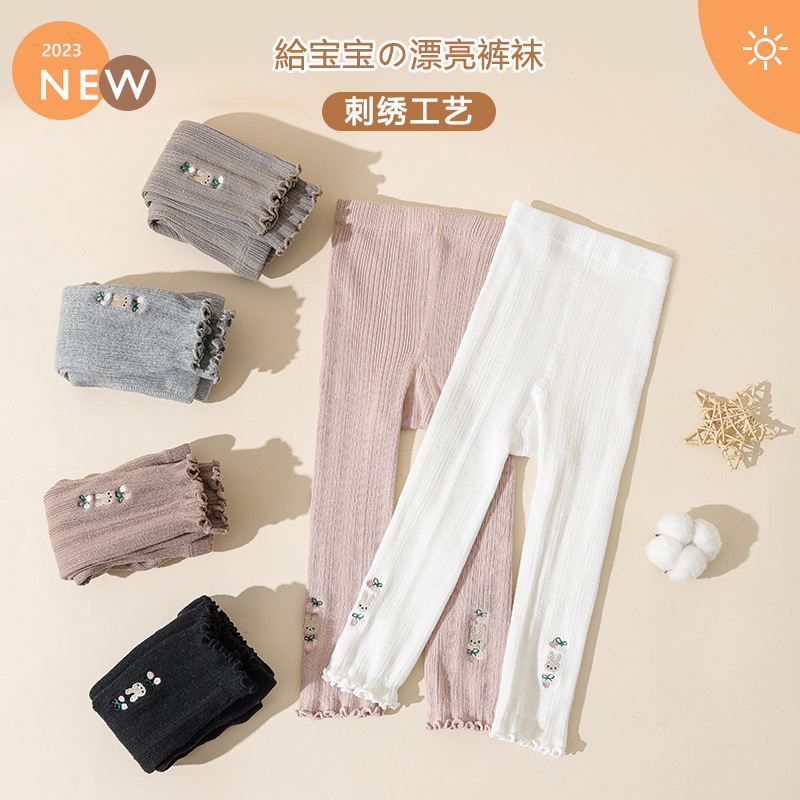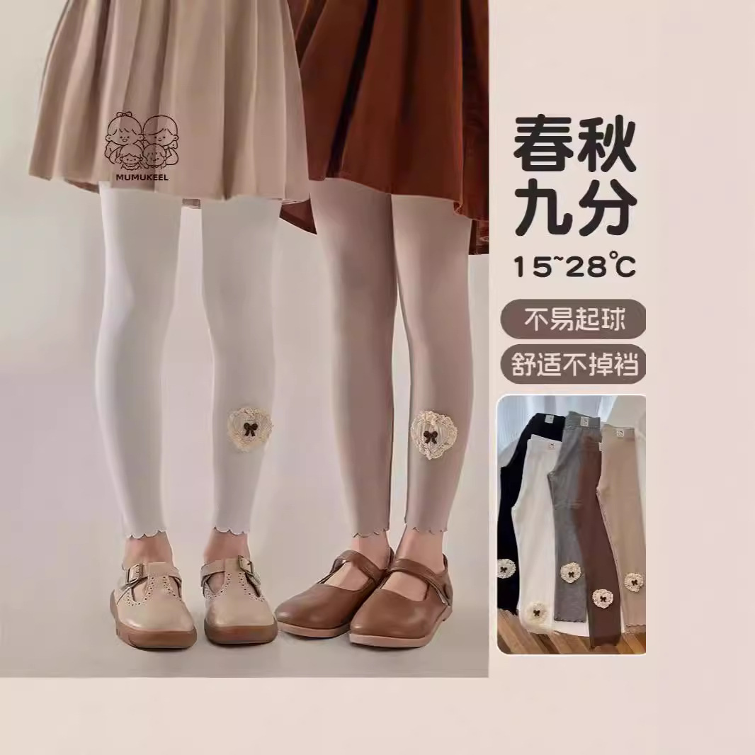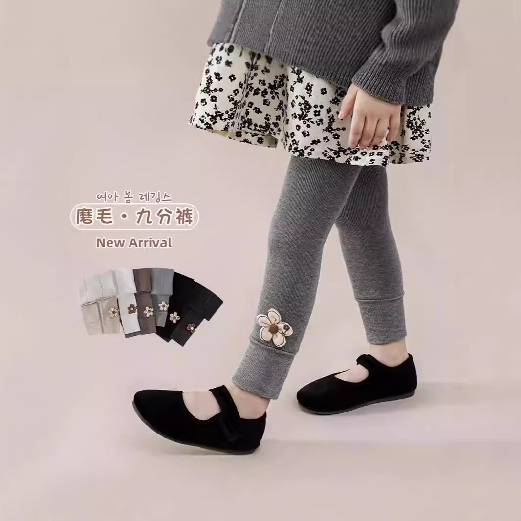 2023新型クロスボーダーの女の子のレギンス韓国版春秋の薄いタイプの外は赤ちゃんの9分のズボンの子供のズボンを着ます。