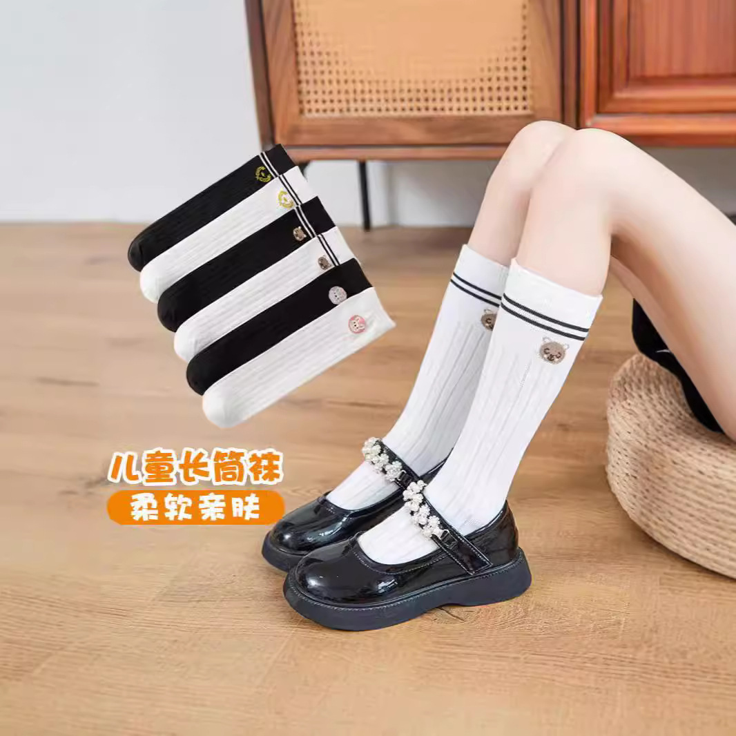 子供の靴下の学院の風の男の子の女の子の中で大きい子供の春秋の新しい広いストライプの百合のファッションの靴下の宝物の漫画の刺繍