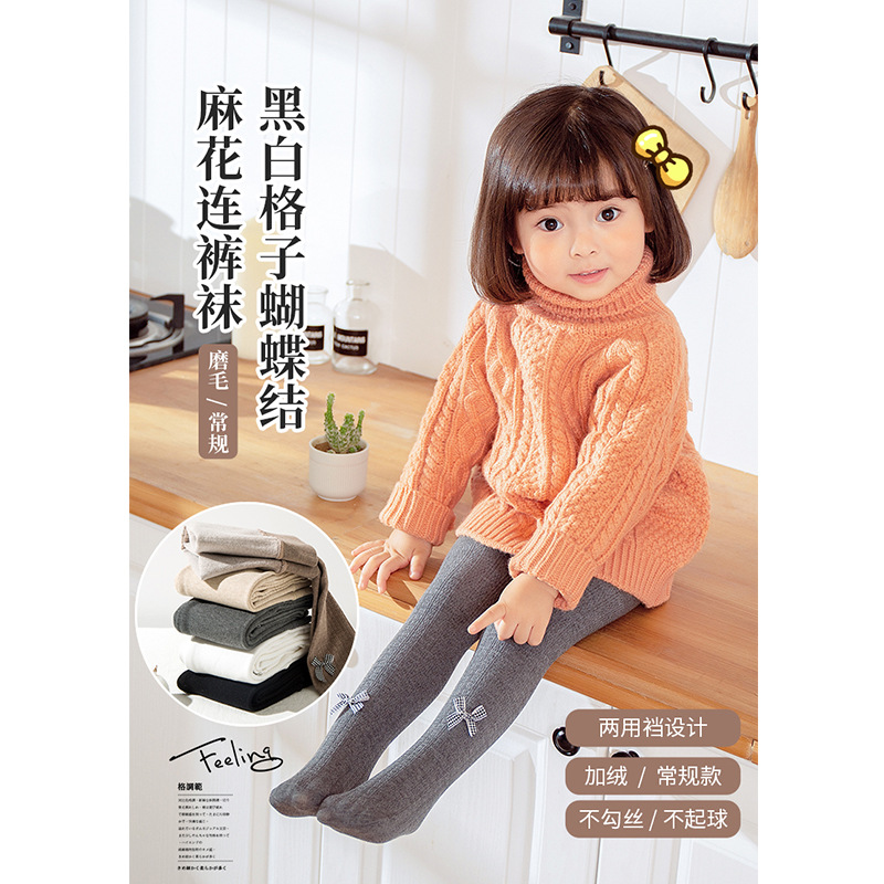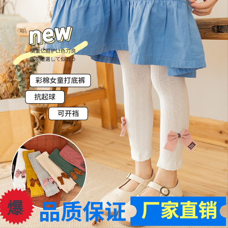 春と秋の麻の花の純色の現物の綿の女の子の冬の厚い綿毛の赤ちゃんは股を開けてズボンの子供のタイツのレギンスのレギンスのズボンを開けます。