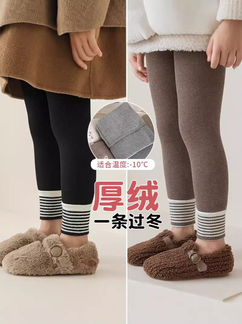 女の子の秋冬のレギンスとベルベットの厚い一体のベルベットの外に綿の中の子供のストッキングを着て保温縦条を9分着ます
