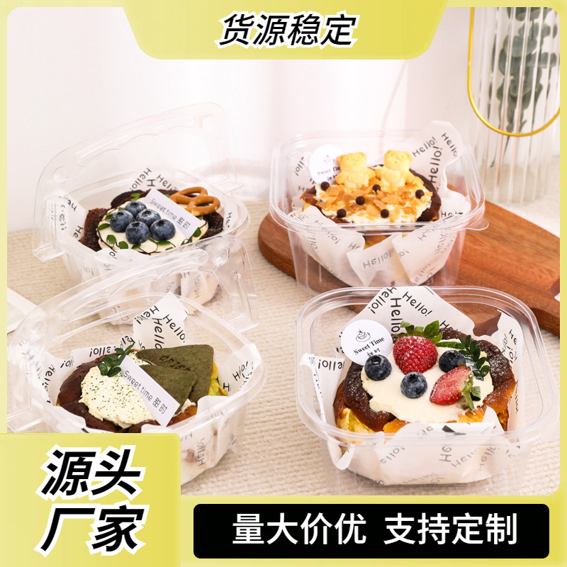 3寸4寸のバスクのケーキの箱の透明な洋菓子の箱のペーストのチーズの厚さはティラミスを切って焙煎して箱を大きくします。