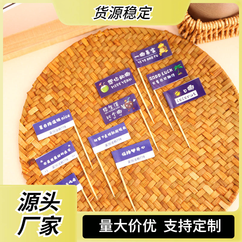 ココナッツの冷凍挿し旗の挿し込みの氷の粉の氷のスープの丸いつまようじの小さい旗の竹の署名の地名のラベルのネットの赤い装飾のステッカー