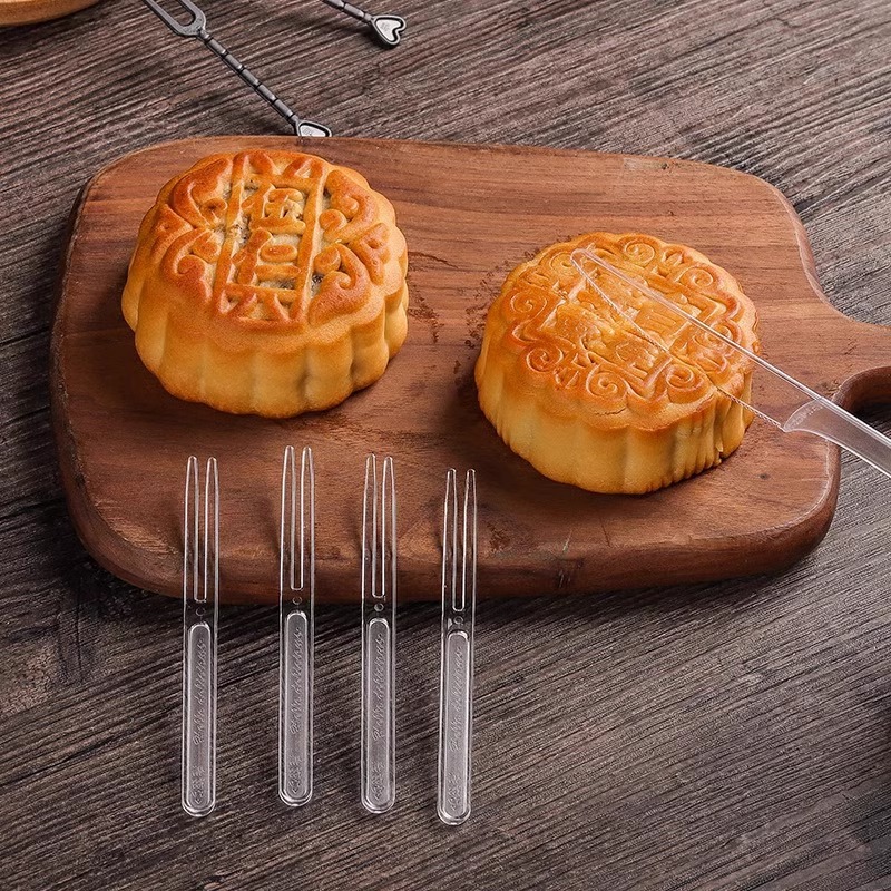 中秋月餅使い捨てナイフフォークセット食器グリーン高級誕生日ケーキプラスチック商用独立包装