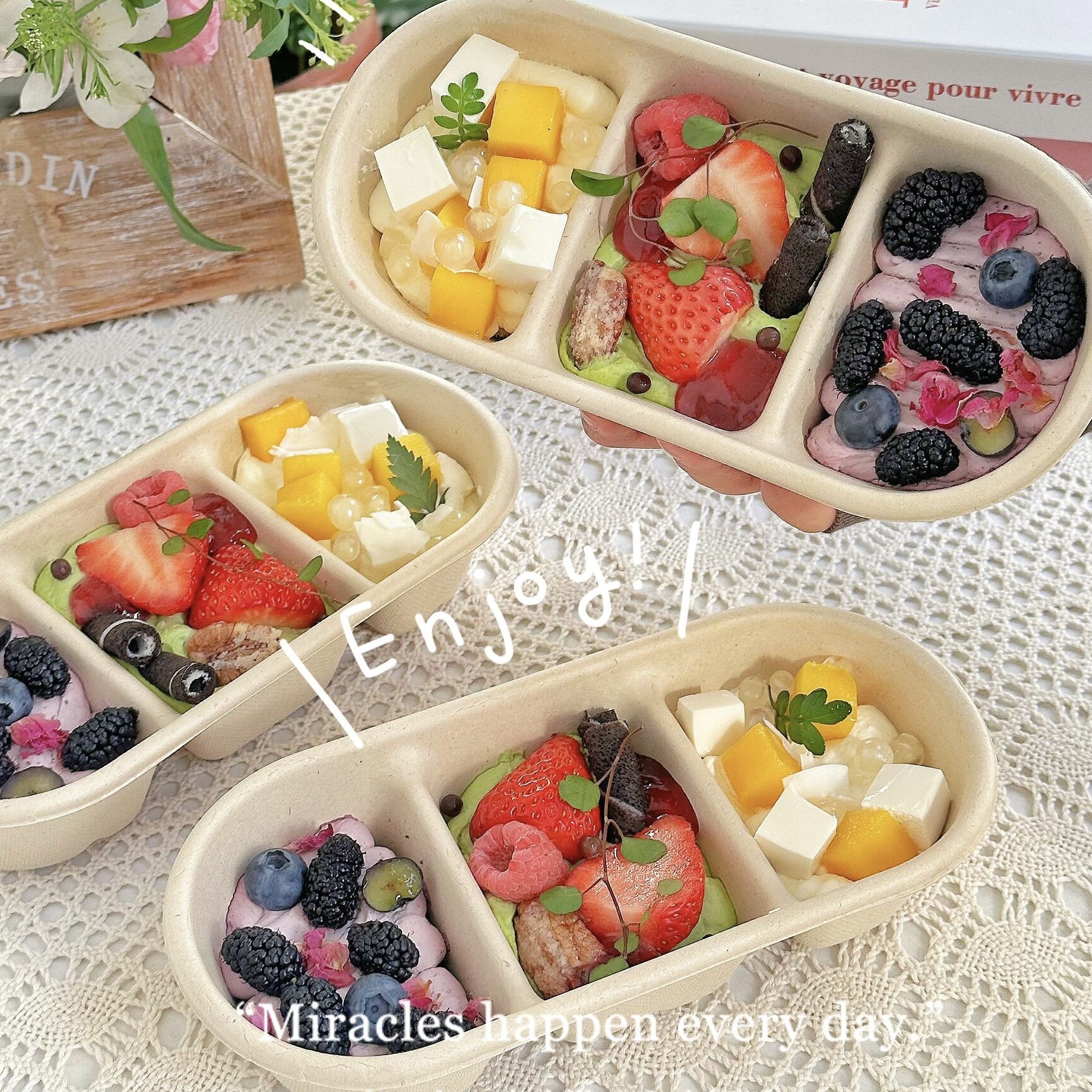 三つ組包装箱三味ケーキ野食箱茶休憩弁当箱キャンプデザート包装箱パルプ三段箱