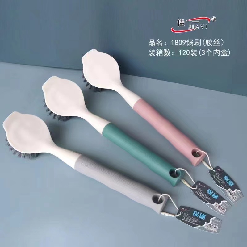 佳一1810シリコンゴム鍋ブラシ臨沂日用デパートプラスチック長柄鍋ブラシ鍋キッチン清潔ブラシ卸売り