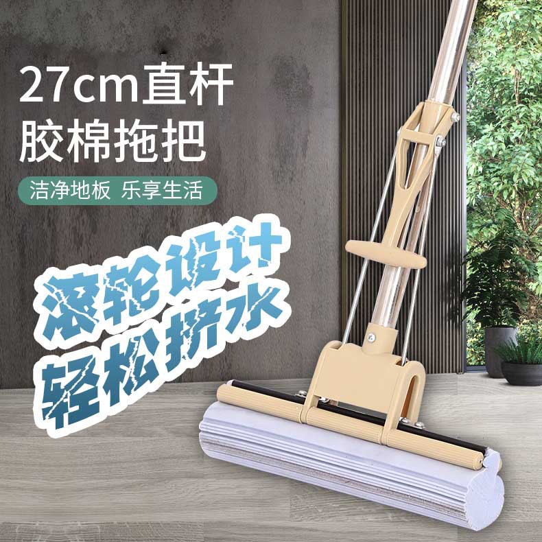 シングルローラー27cm綿ゴムモップ家庭用デパート超ステンレスストレート吸水床スポンジモップ卸売り