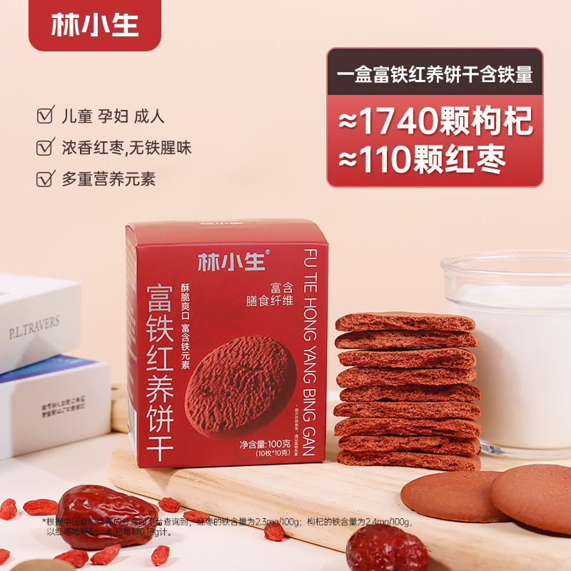 Lin Xiaosheng 鉄分豊富な赤ビスケット、ナツメヤシ、クコの実、鉄分、葉酸、栄養価の高い女性向けスナック、アフタヌーンティーの食事代替品
