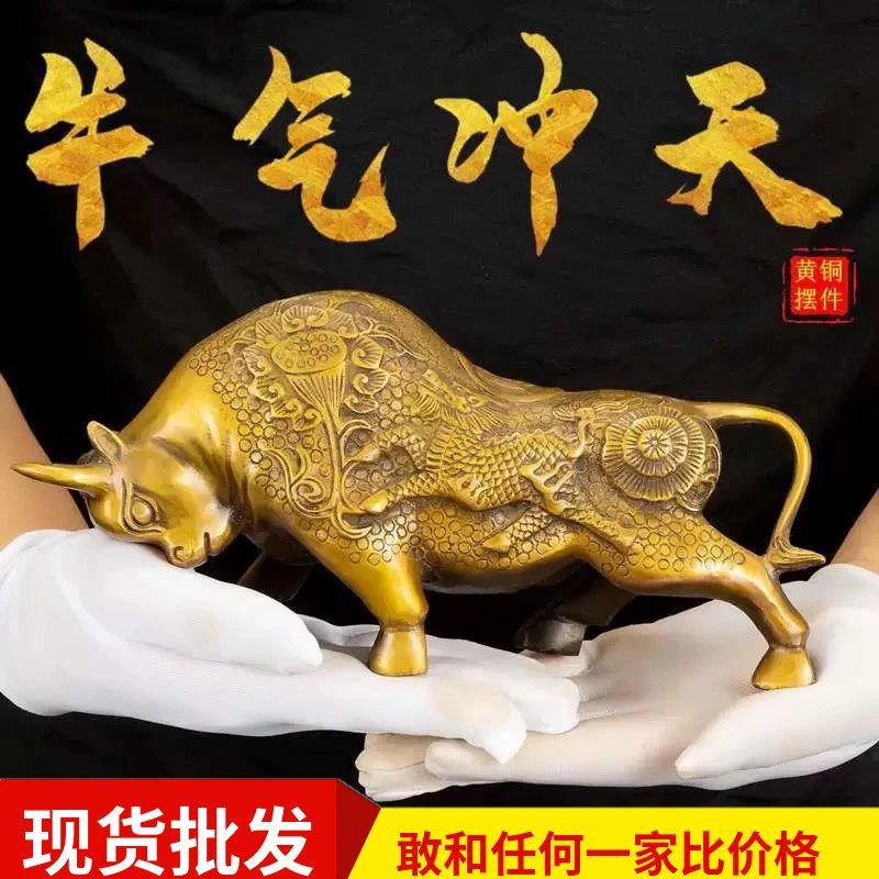 真鍮の牛の置物の金牛の運牛は古銅の器の吉祥の牛の贈り物の銅の工芸品の小さいサイズの銅の牛をまねて株の銅の牛を炒めます