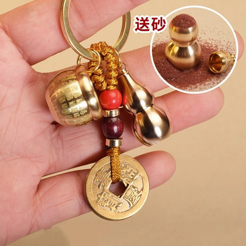 2025 新しい職人技の新しい銅製百福シリンダーキーホルダーレトロひょうたん運転個人用品