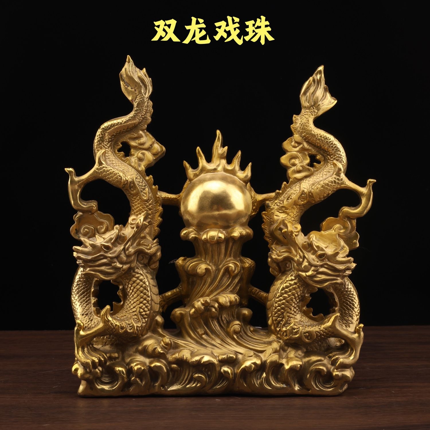 真鍮双龍百財装飾品真鍮双龍富青龍五爪金龍干支龍ホームクラフトギフト T