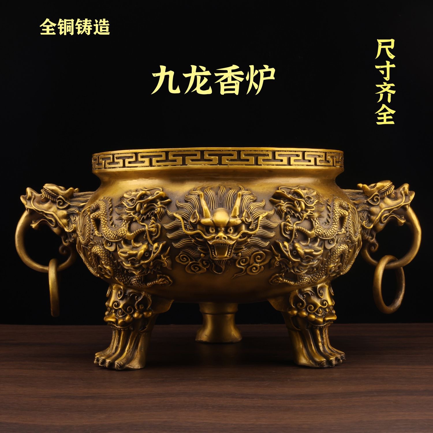 真鍮九龍香炉装飾品大型リビングルーム家庭用中国仏殿祭壇屋内三脚香炉 T