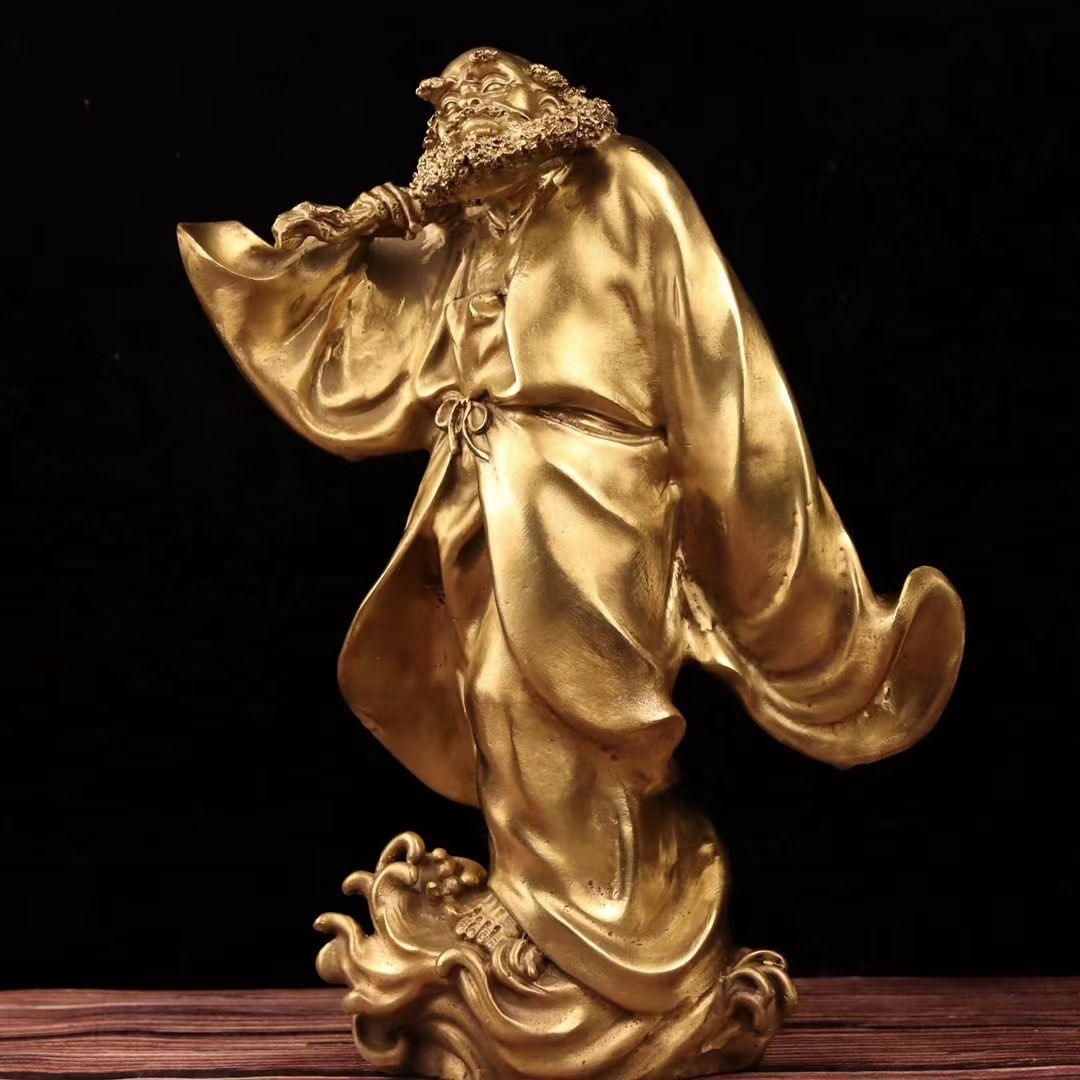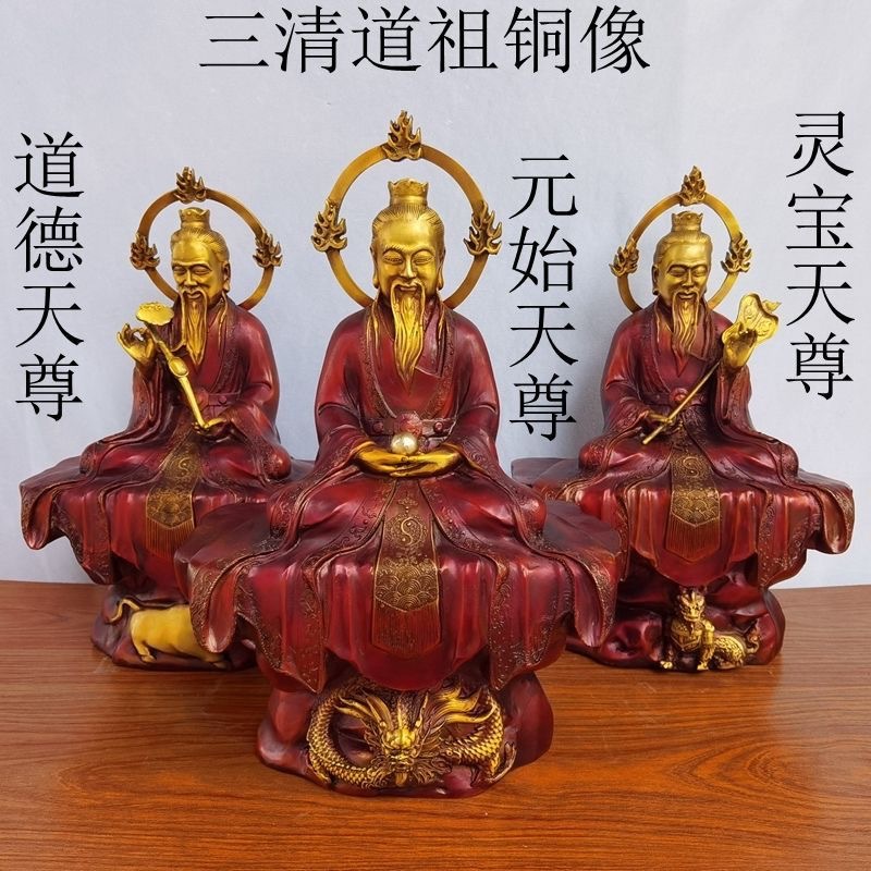 真鍮三清道教祖装飾品塗装太上老君銅像リンバオ元始道徳天尊家庭用仏像 T