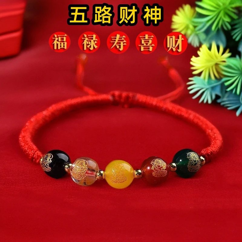 (感謝の声) 2025 新しい 5 方向の富の神の意味の赤いロープ ブレスレット男性と女性のための運転用品