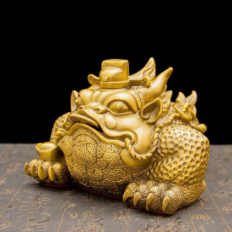 真鍮ゴールデンヒキガエル装飾品ホームオフィスストアデスクトップ装飾金インゴット皇帝ヒキガエル三本足ヒキガエル T