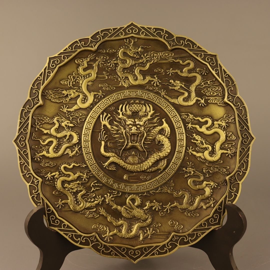 九龍プレート装飾品真鍮九龍壁固体銅プレートホームオフィス装飾アンティークドラゴンパターンディスク T