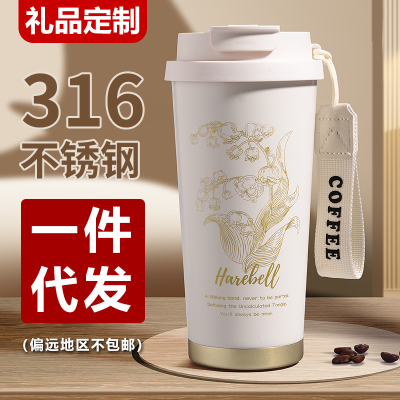 ステンレス保温カップ316ストロー付き携帯高颜値铃兰随行カッププレゼントカップ保温コーヒーカップ