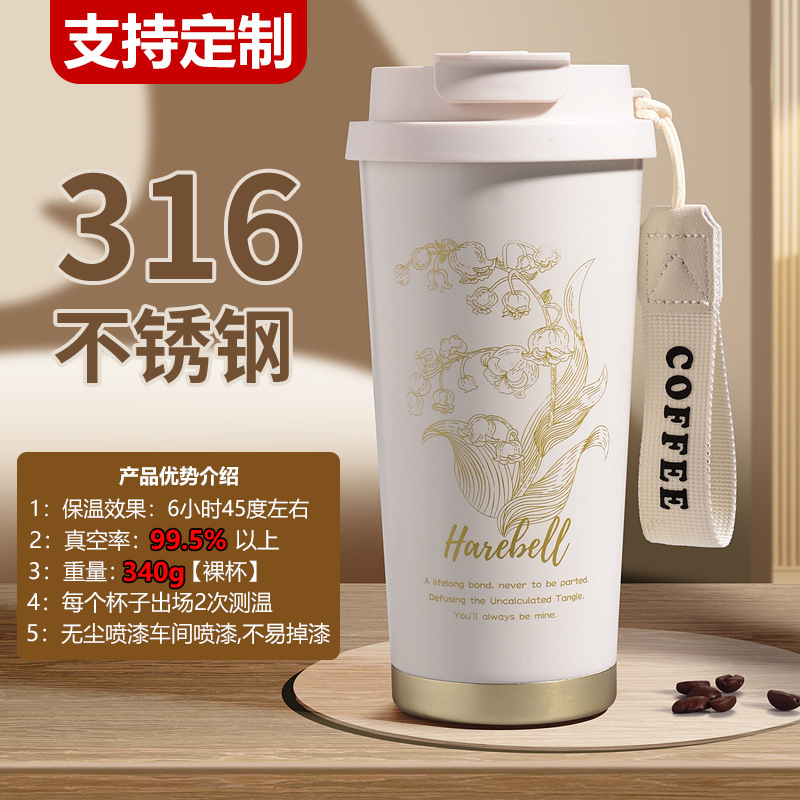 スズランコーヒー保温カップ316ステンレスストロー二重飲み保温カップ随行コーヒーカップ
