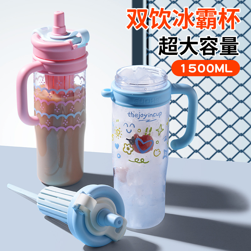 夏の高見えするカラフルなアイスバーストローカップ、かわいくて持ち運びに便利な大容量ニッチ学生スポーツウォーターボトルダブルドリンクカップ