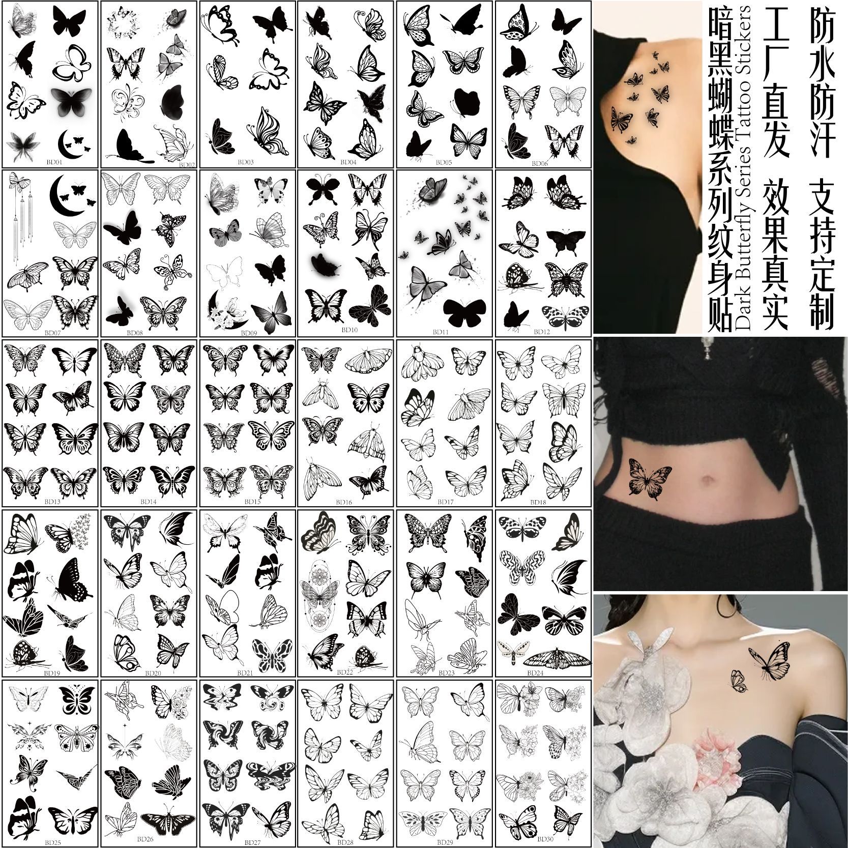 国境を越えた新しいダークバタフライタトゥーステッカー、ハイエンドシミュレーション鎖骨アームセクシーな一時的なタトゥーステッカー