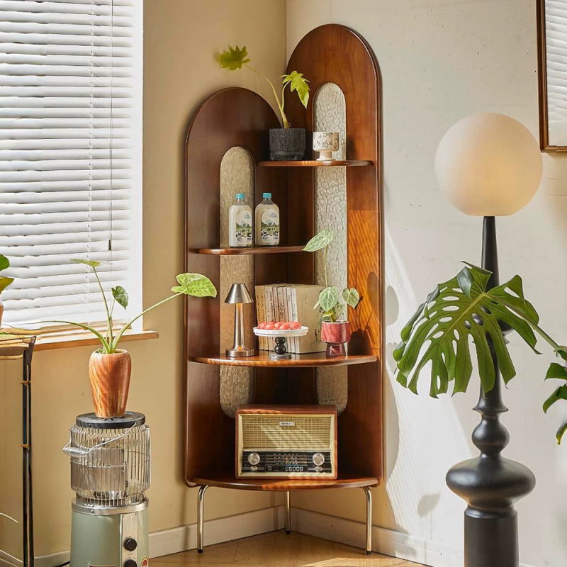 フレンチミッドレトロ籐リビングルーム無垢材ソファ壁コーナー本棚スクリーン3コーナー収納フロアシェルフ
