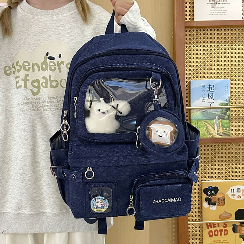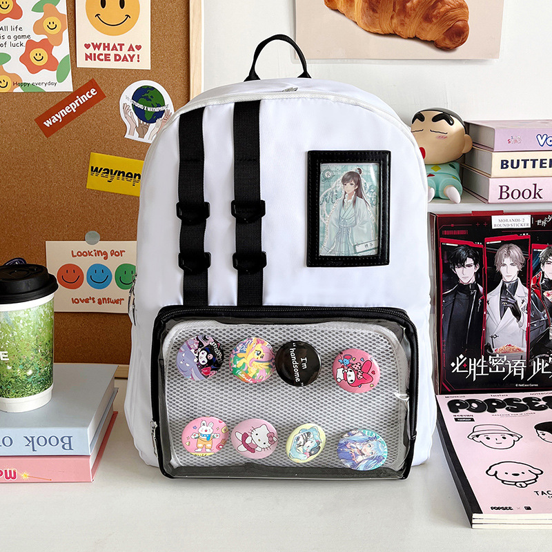 可爱学院风大容量书包休闲百搭双肩包学生ins吧唧透明痛包高颜值