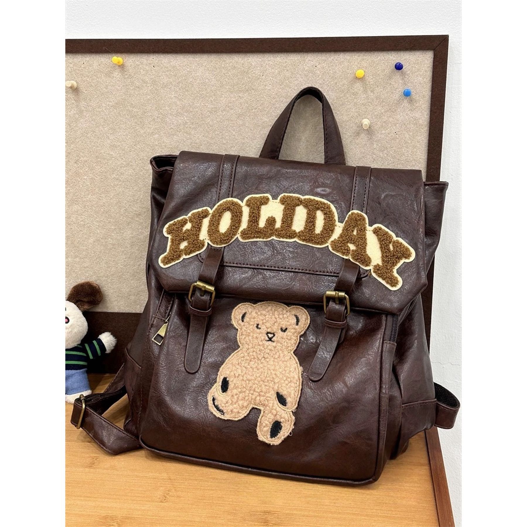 カジュアルバックパック女性の大容量オリジナルアメリカンレトロ pu スクールバッグ女性のかわいいレターベアポータブルバックパック