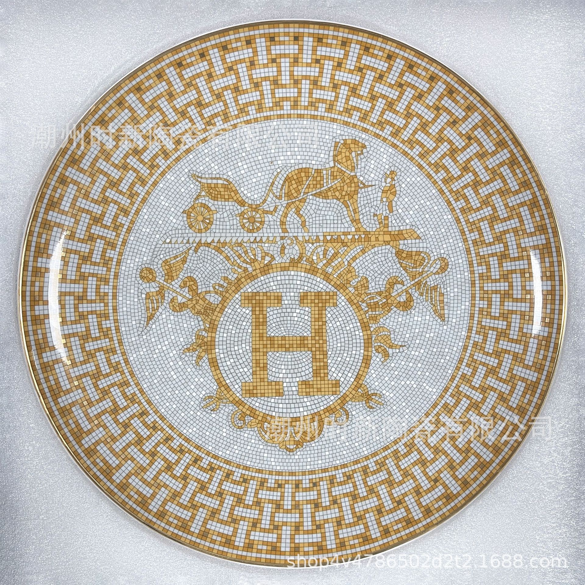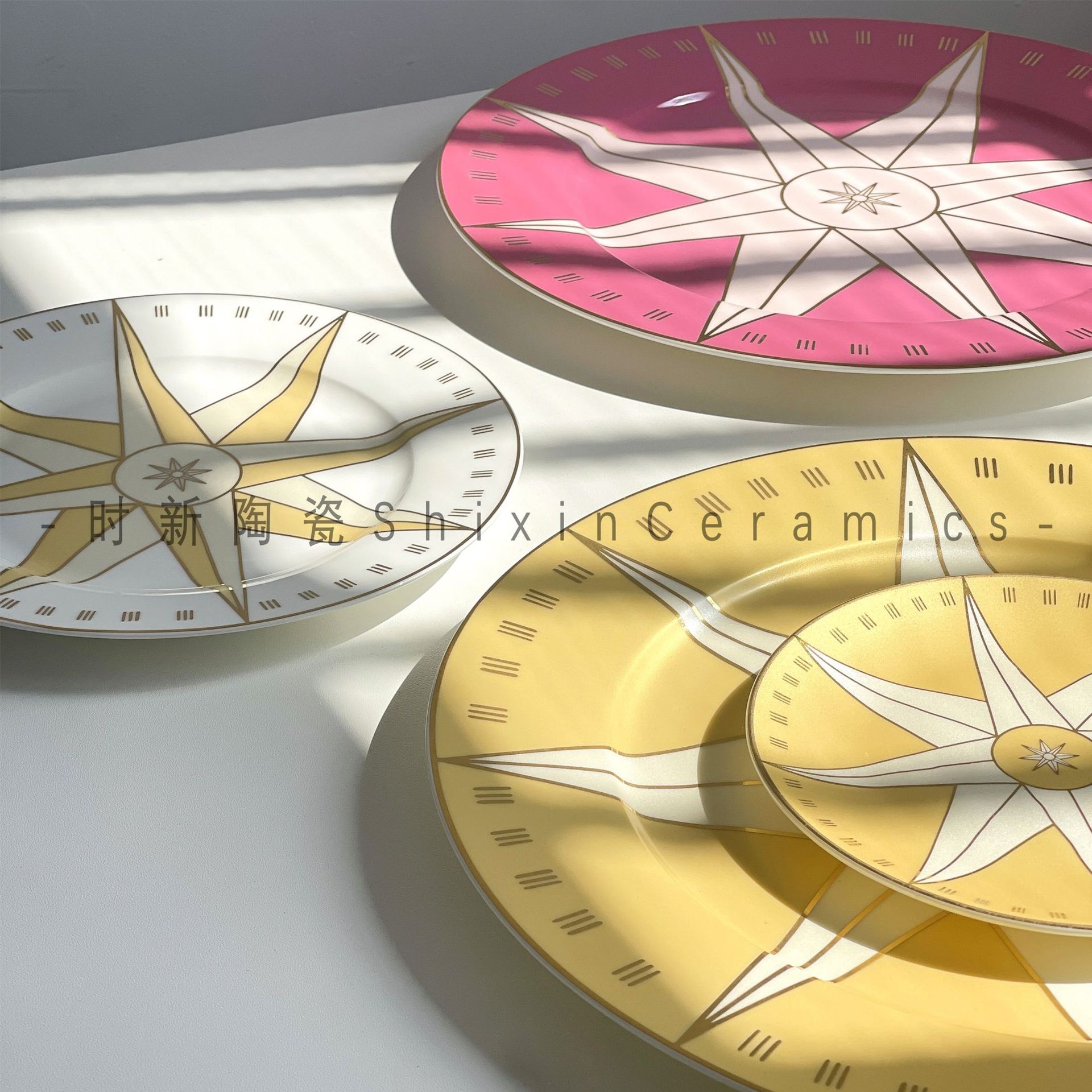 D家の幸運な星のコンパスのシリーズは金の辺の皿のハイエンドの軽い豪華なヨーロッパ式の迪家の食事の皿の洋食の皿を描いてプレゼントします。
