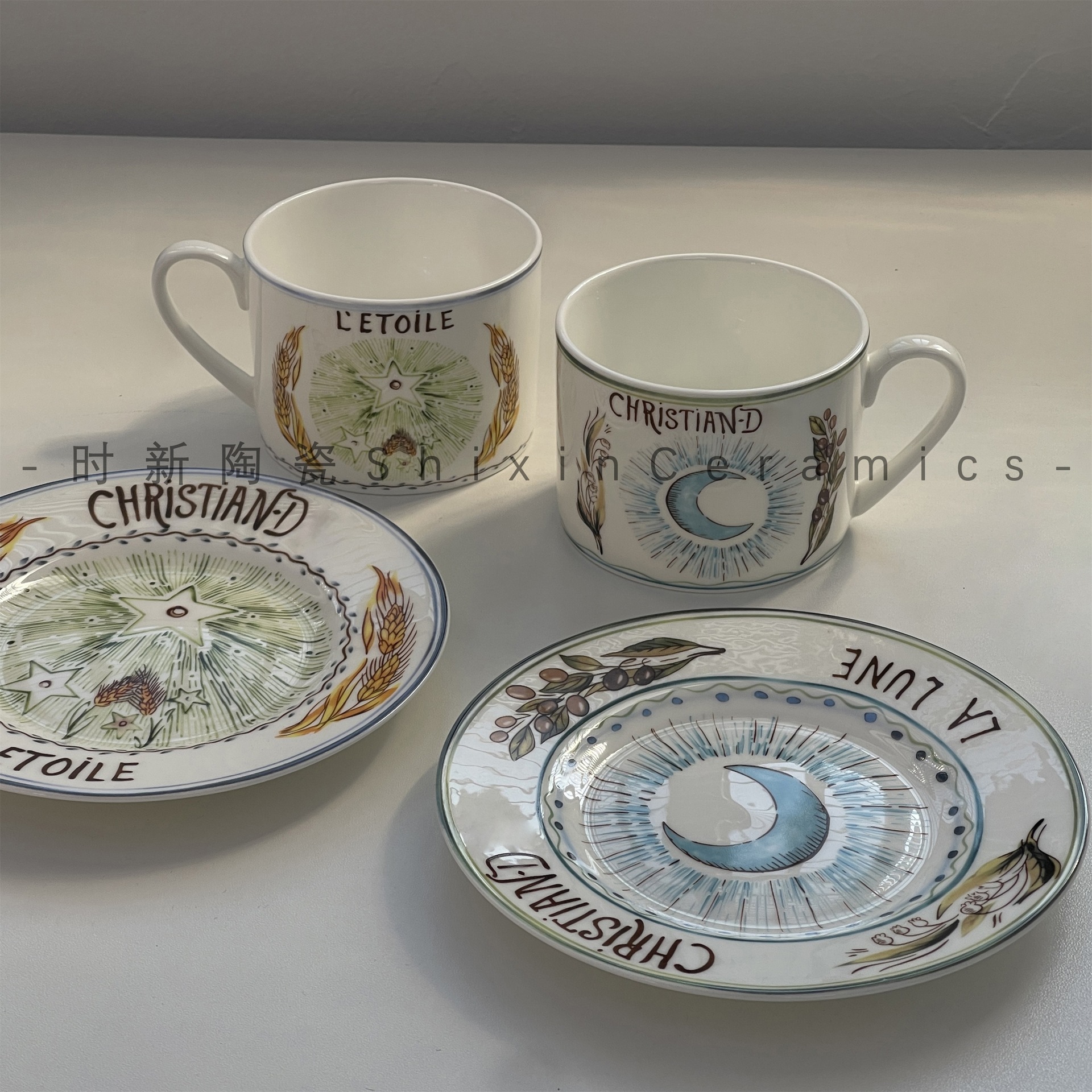 国境を越えたコーヒーカップカップルのダブルカップ皿ギフトボックス太陽星ヨーロッパ式復古午後茶器家庭用骨磁器セット