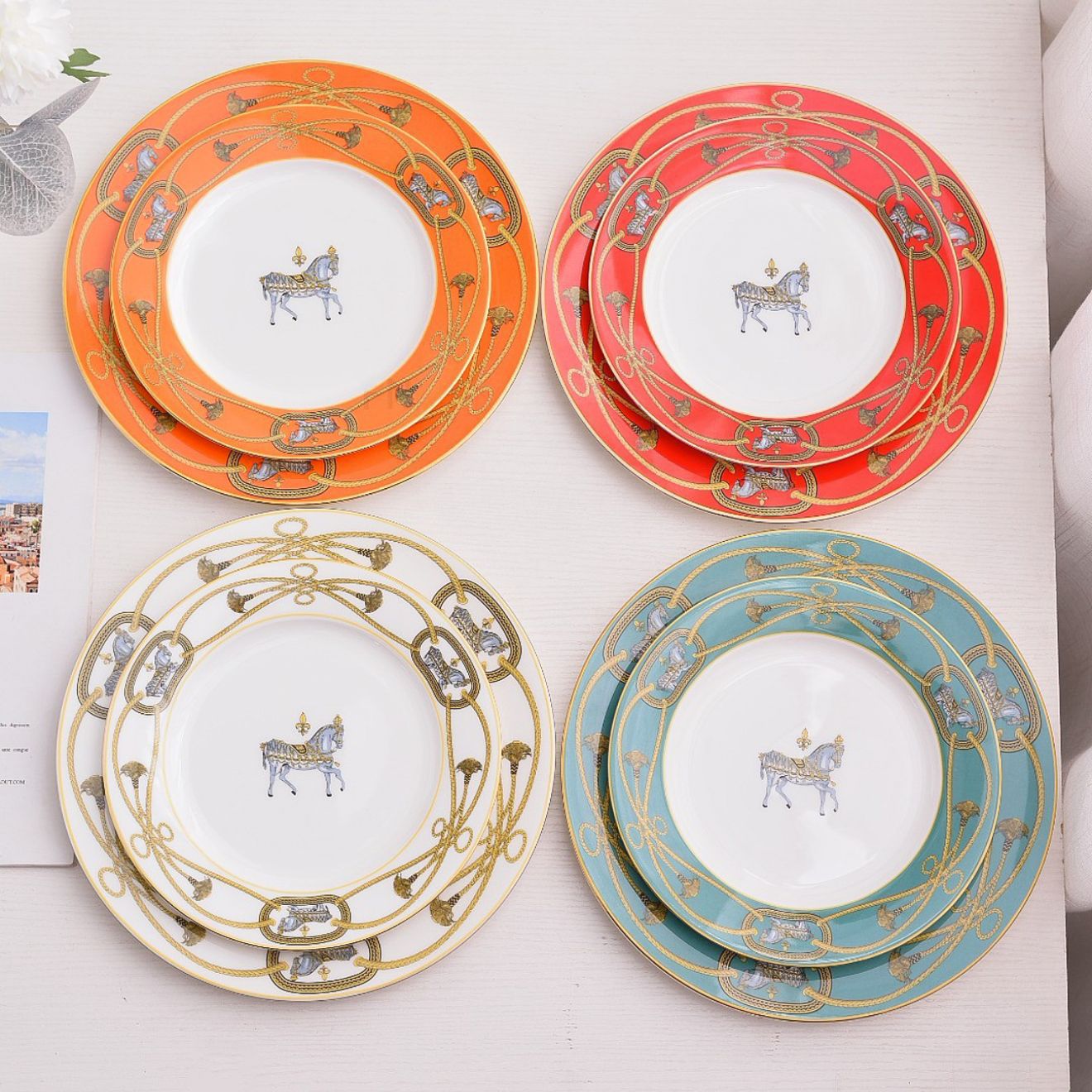 軽くて豪華な骨の磁器の戦馬の西の食事の皿の個性のステーキの皿の置物の午後のお茶のお菓子の皿の食器のギフトボックスの卸売り