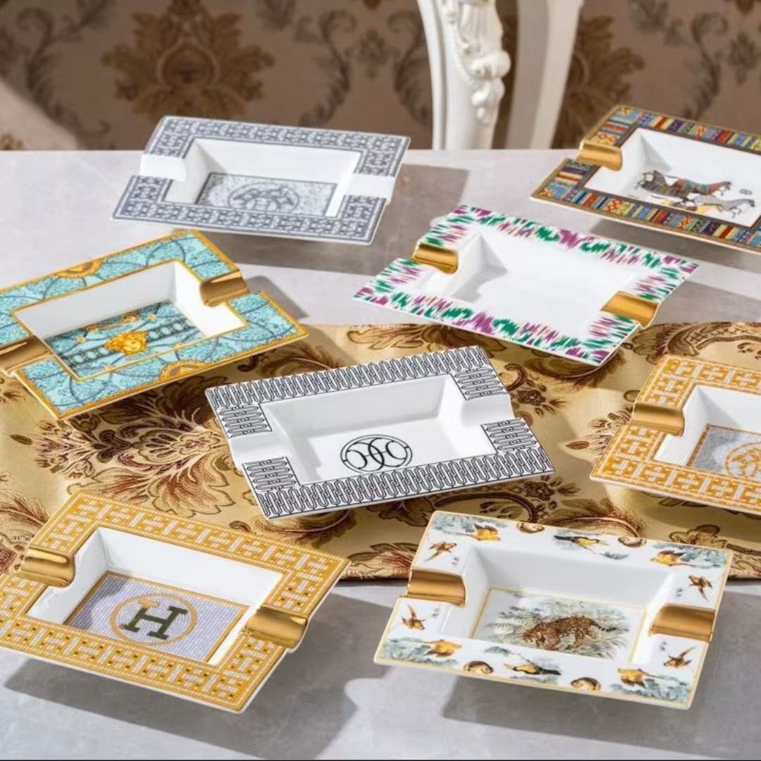 ヨーロッパ式の骨磁器の灰皿の創意家庭用の陶磁器の灰皿の個性の事務室のシガーのかめの装飾の軽い豪華な灰皿