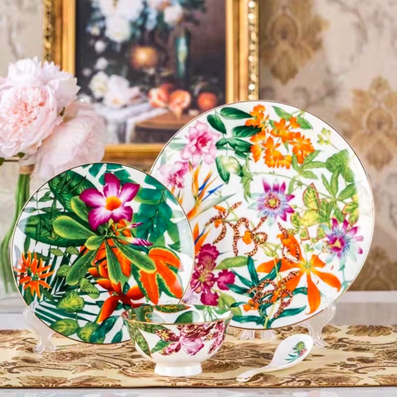 H家熱帯雨林骨磁器食器家庭用陶磁器洋食皿食器スプーンセット