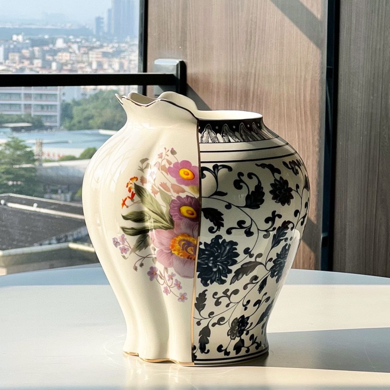 イタリアの軽い豪華なセレッティの小さな玄関の陶磁器の中西の壁の花瓶の高級感の置物の客間の生け花