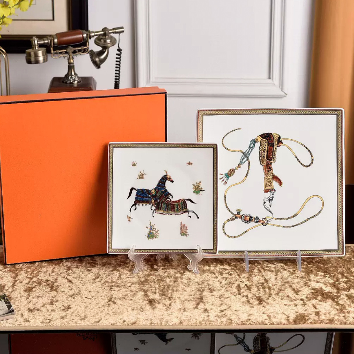 国境を越えたヨーロッパ式H家戦馬シリーズ骨磁器食器ケーキ皿個性ステーキ皿洋食角皿結婚プレゼント